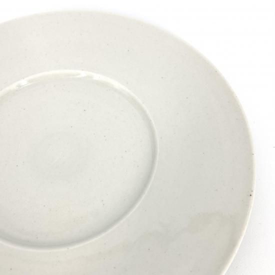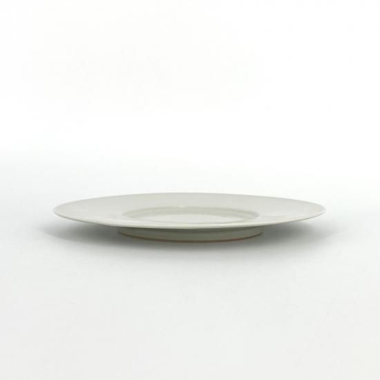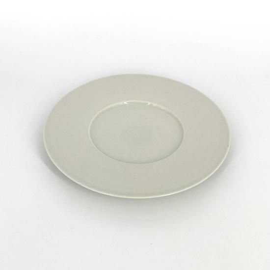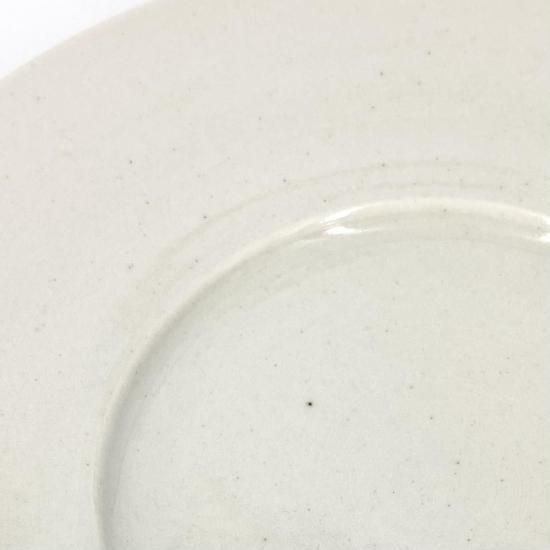 また、半磁器(陶器と磁器の中間の性質)で作られた器は取り扱いがしやすく、程よい重さもあり、安心感があります。和食洋食、ジャンルを問わず、どんな料理も素敵に引き立ててくれます。何気ないけれども、とても美しい器は、レストランやカフェのように、何枚も揃えて使いたくなります。前菜や副菜、デザート皿としても頼もしい器です。リムの部分が広いので、中心にメインのものを、周りを飾るように素敵な盛り付けを楽しむ事ができます。