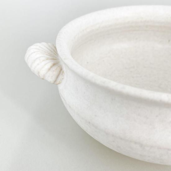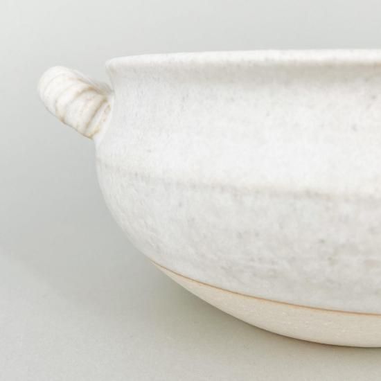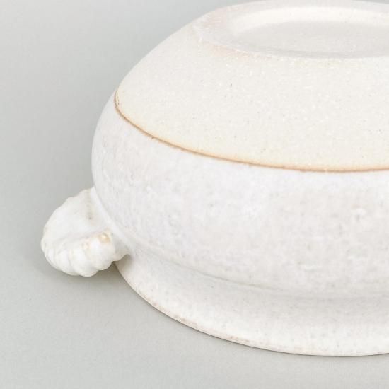 さらっとした質感が心地よいグラタン皿。シンプルながらもどこか愛らしいデザインは、料理を引き立てるだけでなく、食卓にもさりげなく華を添えます。オーブンで調理した作りたての温かさをそのまま食卓へ。日常のひとりごはんにはもちろん、家族の食卓やちょっとしたおもてなしにも活躍する、使い勝手の良い一枚です。