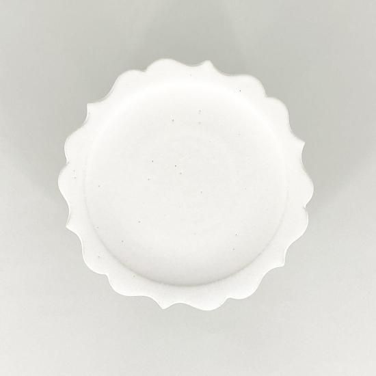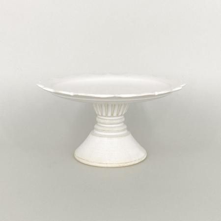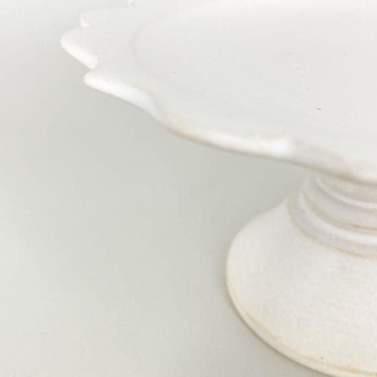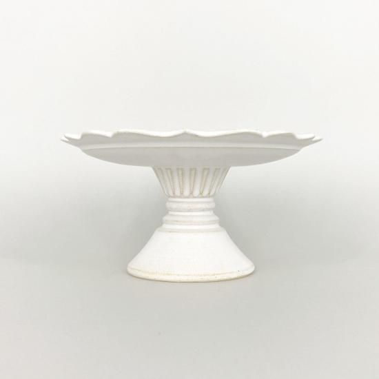 さらっとしたマットな質感が心地よいケーキスタンド。リムと脚に施されたデザインは、可憐さと落ち着きを併せ持ち、ホールケーキなら4号サイズがぴったり。焼き菓子やフルーツをのせるだけでも食卓を上品に彩ります。普段のお茶の時間はもちろん、特別な日の食卓にも華やかさを添える一品です。