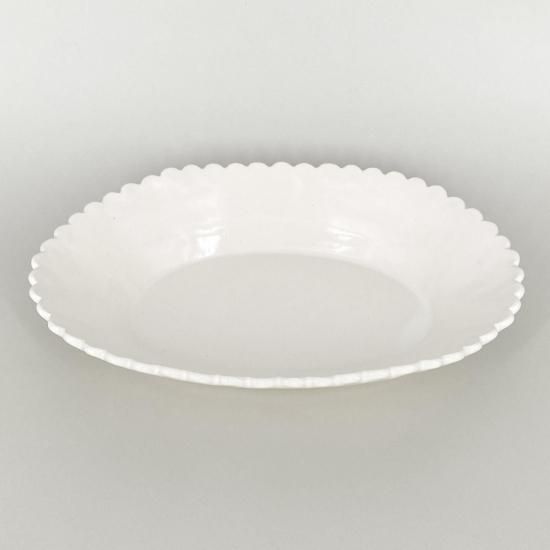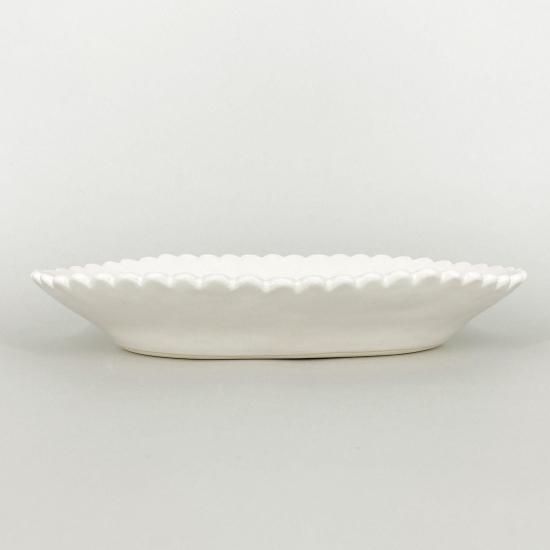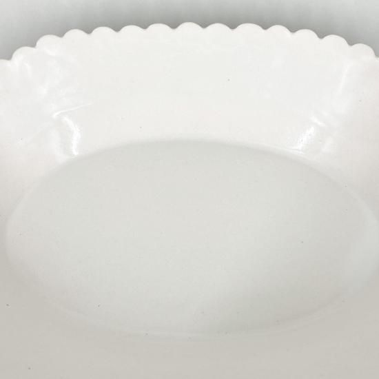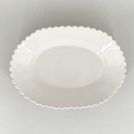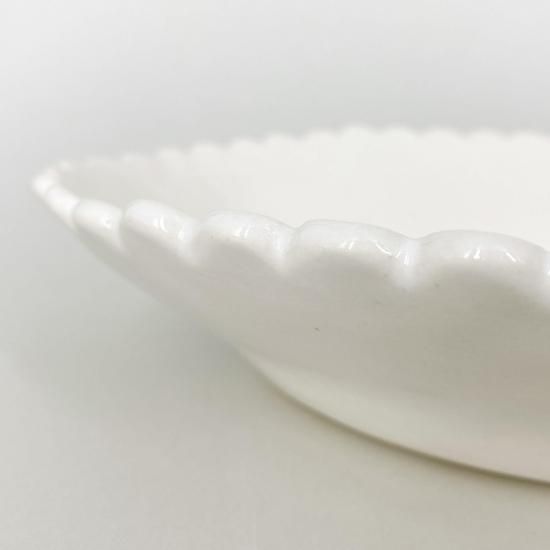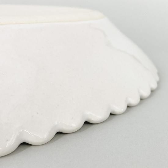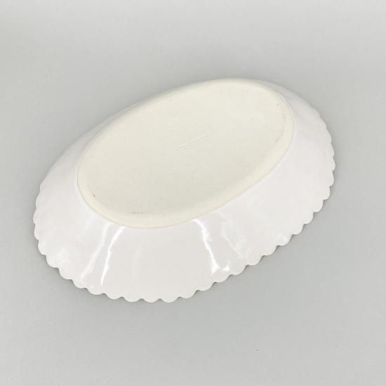 温かみのある白に落ち着いたツヤを纏った、オーバル型のうつわ。マーガレットをイメージしたデザインは、シンプルでありながらも愛らしさを感じる佇まい。花びらを思わせるやさしい曲線がリズムを生み、食卓に華やぎを添えてくれます。深さがあるので、パスタや煮込み料理などにも使いやすく、大勢で食卓を囲む時にも活躍してくれそうです。ひとりの時には、サラダを添えてワンプレートとしても。さまざまなシーンで頼れる一枚です。